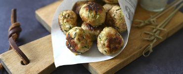 Zucchini-Hähnchen-Bällchen mit Feta-Joghurt-Dip